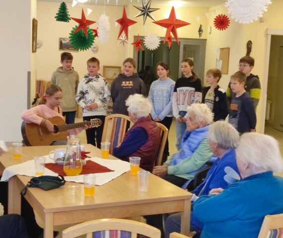 Einen unterhaltsame Stunde bereitete eine 9köpfige Gruppe aus der 3a den betagten Menschen im Seniorenhaus Althea in Mooskirchen. Weihnachten früher und heute war das...